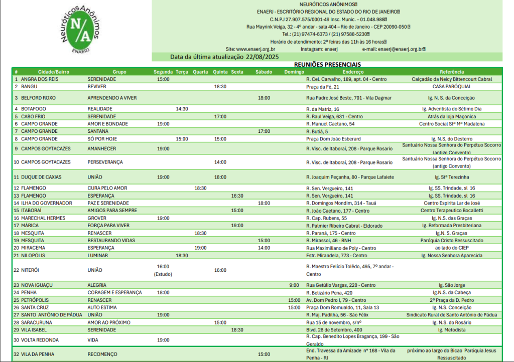 • ENAERJ - Neuróticos Anônimos - Escritório Regional do Estado do Rio de Janeiro